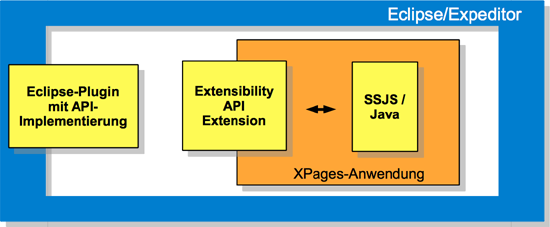 Die API unterstützt sowohl die Ausführung von server-side JavaScript-Code (SSJS) im Rahmen eines Ajax-Events (z.B. Klick auf einen Button in der XPages-UI) als auch die Ausführung von JavaScript/Java-Code losgelöst von XPages-Anwendungen, beispielsweise beim Client-Start oder beim Klick auf einen Symbolleisteneintrag.